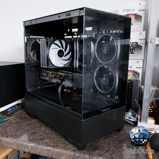 Ryzen 7 7800X3D, 32GB DDR5 RAM, 4TB NVMe SSD, Geforce RTX 5070 Ti 16GB in Montech King 95 Pro case with Deepcool AIO Water Cooler